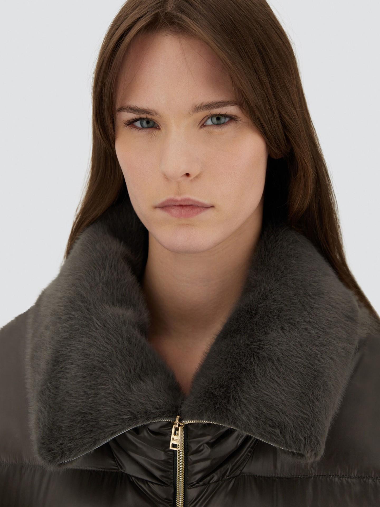 - Hög krage med fuskpäls