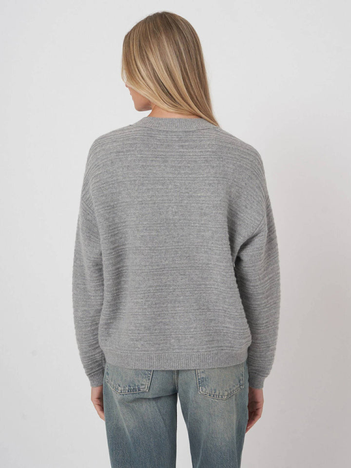 En mjuk och lyxig tröja i 100 % ekologisk kashmir med strukturstickning och avslappnad boxy silhuett. Den har rund hals, nedhasade axlar och lätt puffade ärmar som ger en feminin touch till den moderna passformen. En tidlös stickad favorit som känns lika exklusiv som den ser ut.