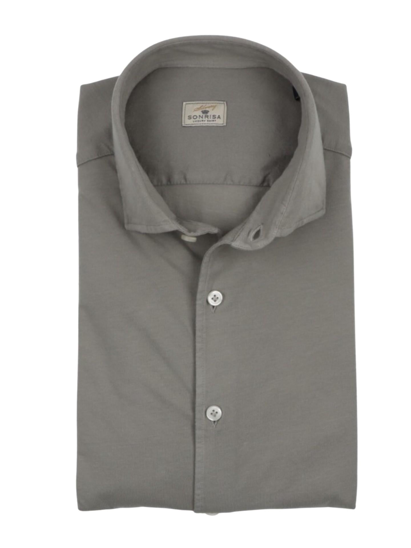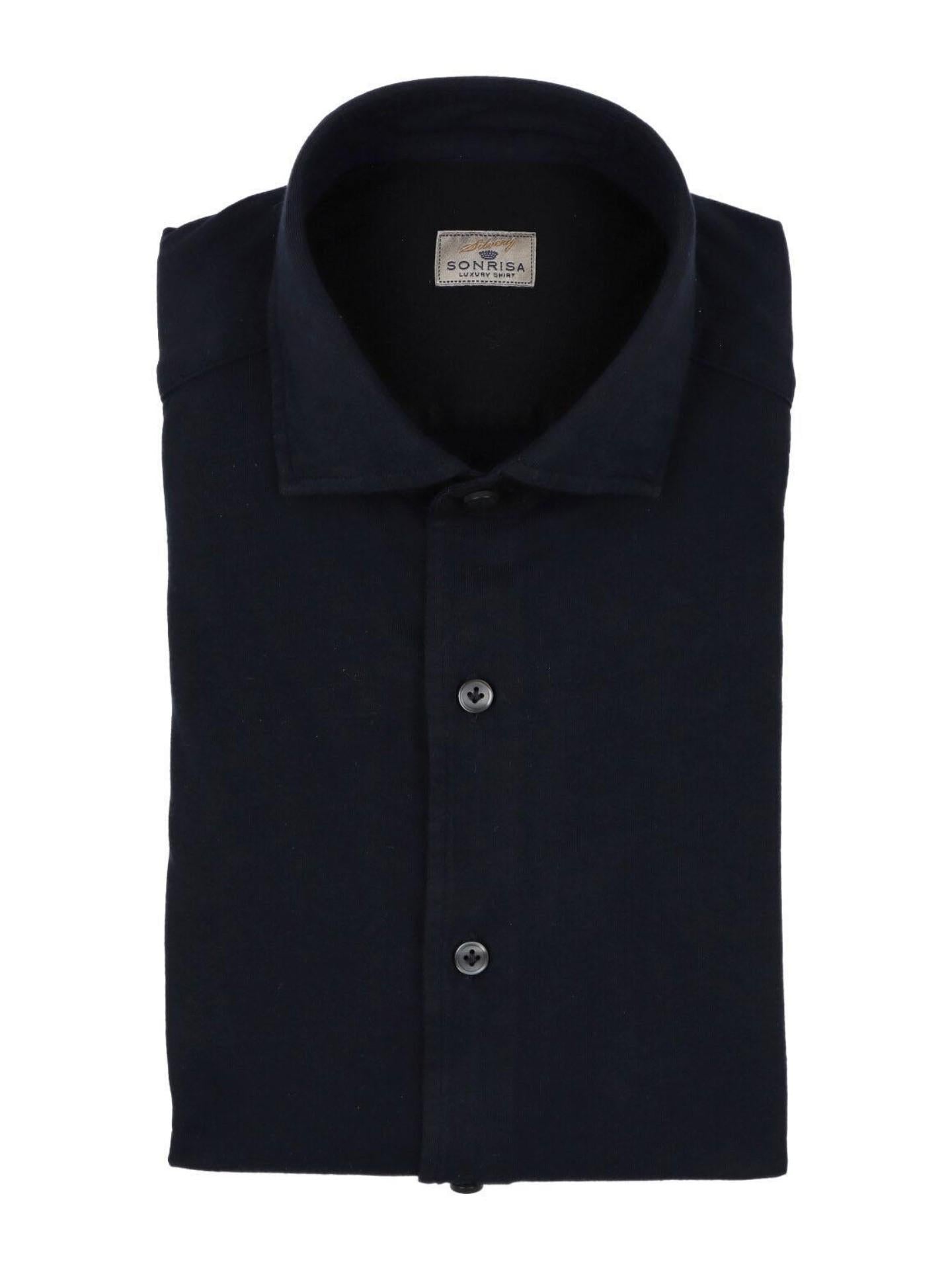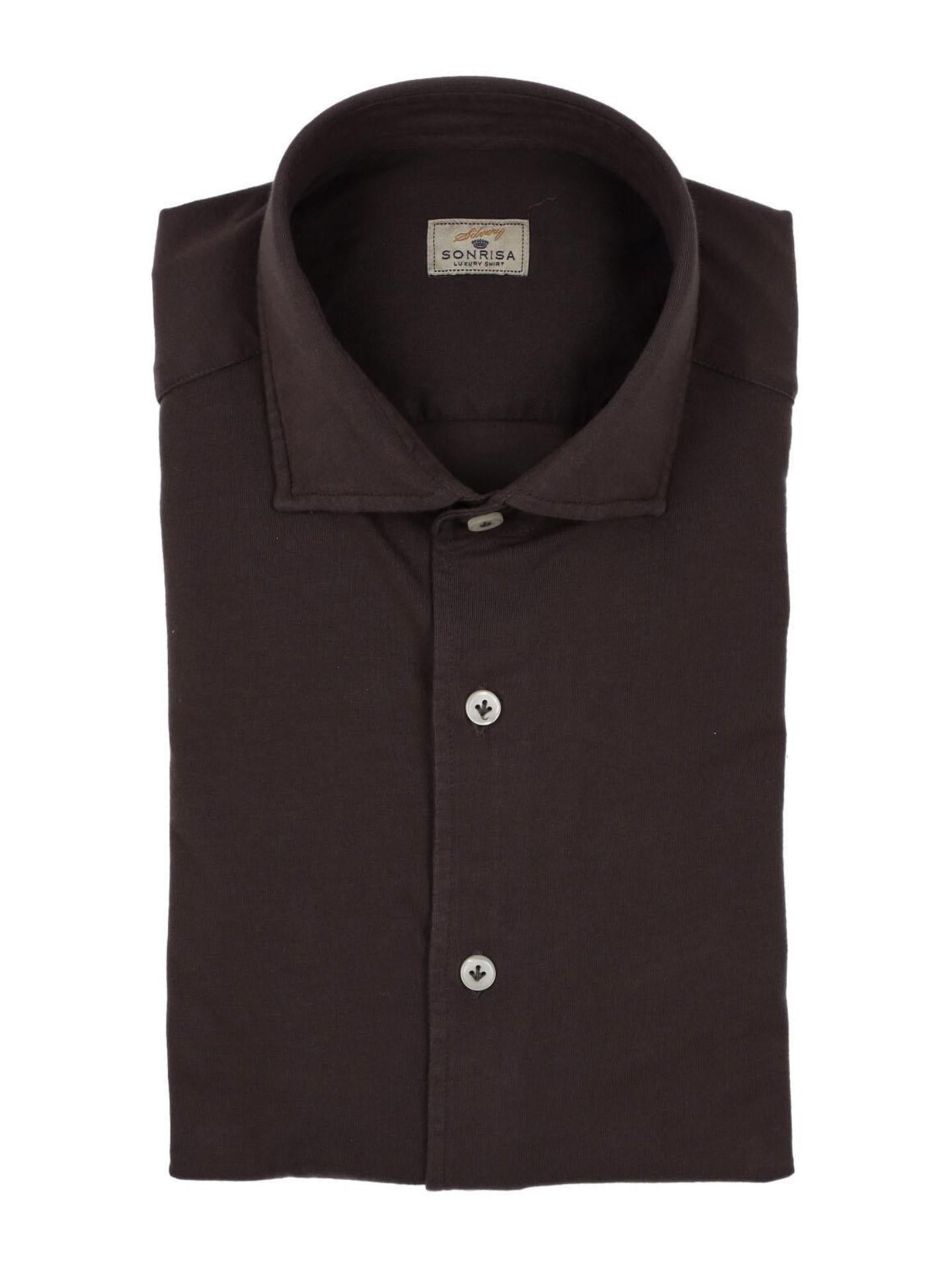 En modern jerseyskjorta från Sonrisa, skapad för mannen som prioriterar komfort utan att kompromissa med ett välklätt uttryck. Tyget har en lätt uppborstad, matt yta som ger ett mjukt men distinkt grepp och ett mer sofistikerat intryck än klassisk slät jersey. Ett tydligt exempel på Sonrisas fokus på kvalitet, hantverk och funktion i balans.
