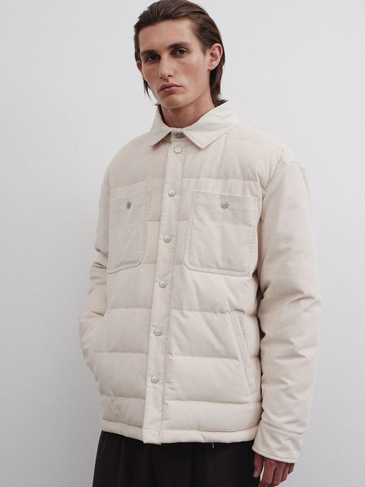 Valstar, känt för sitt tidlösa italienska hantverk sedan 1911, producerar alla sina plagg i Italien med fokus på kvalitet och precision. Denna overshirt kombinerar klassisk utilitär design med mjuk bomullscorduroy och quiltad dunvaddering för värme utan bulk. Tryckknappar och fyra funktionella fickor ger ett stilrent men praktiskt uttryck, medan den lätta konstruktionen gör plagget perfekt både som ensam jacka och som mellanlager under kallare dagar.