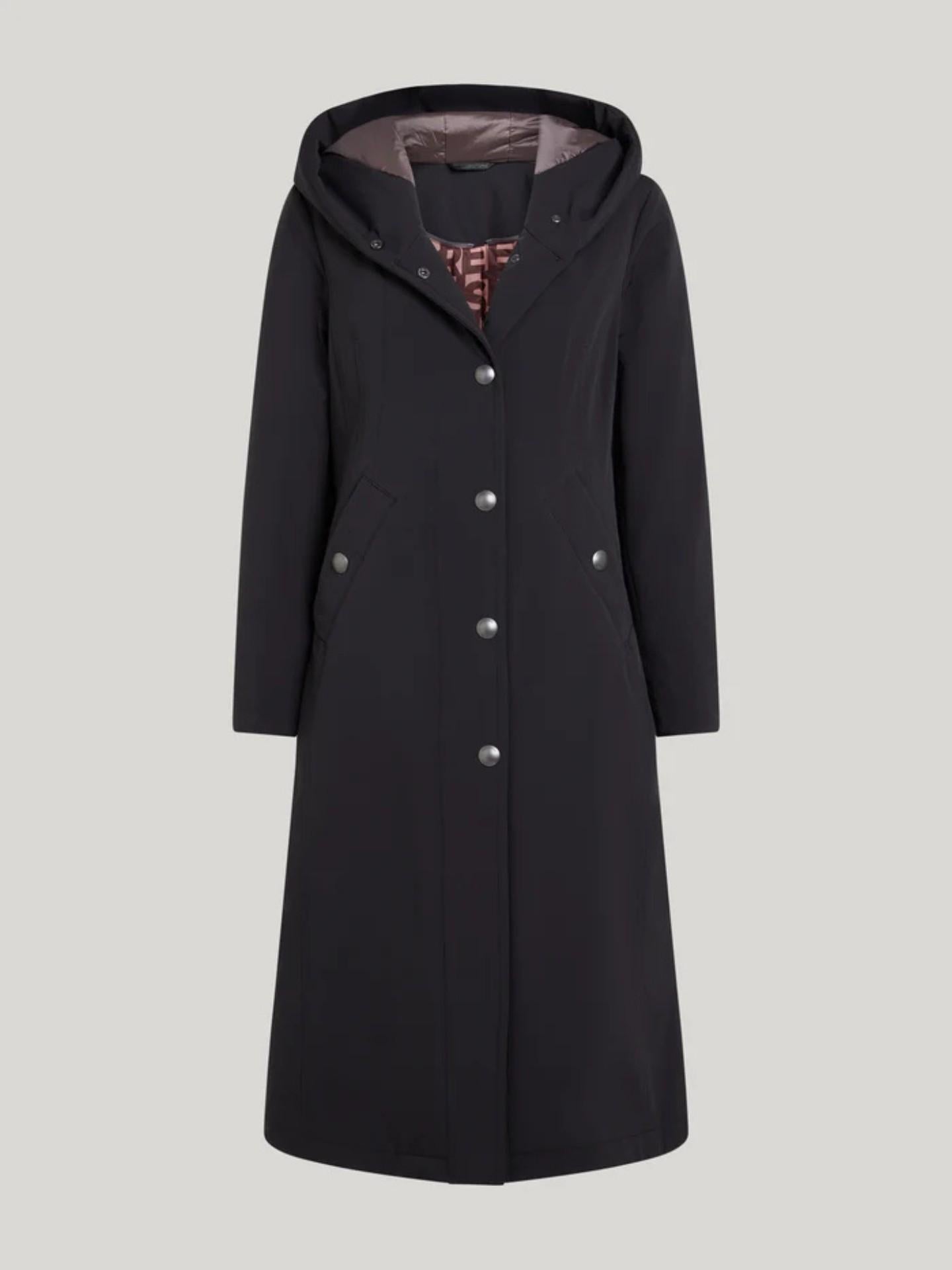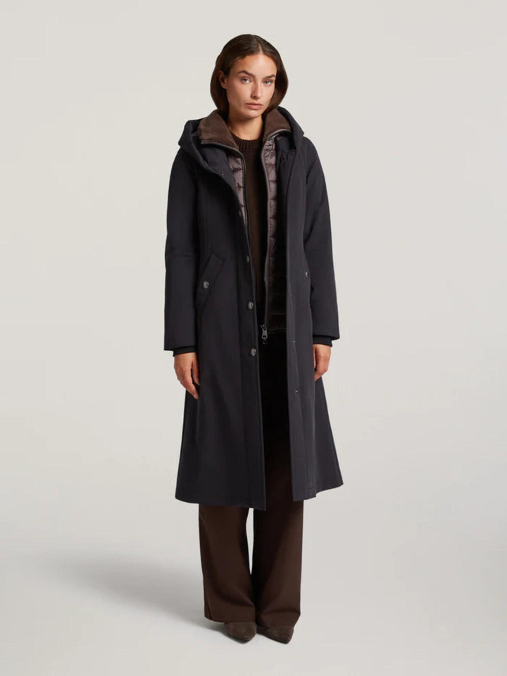 Effie Coat är en teknisk trenchcoat där feminin design möter smart funktionalitet. Den sjalformade huvan och de avtagbara quiltade innerpanelerna med fuskpälskrage gör jackan flexibel och användbar under flera säsonger. Den eleganta veckade ryggen ger ett mjukt fall, medan tvåvägs dragkedja och subtila detaljer adderar en exklusiv känsla. En mångsidig och vädertålig kappa som lyfter både vardagsstilen och citylooken.