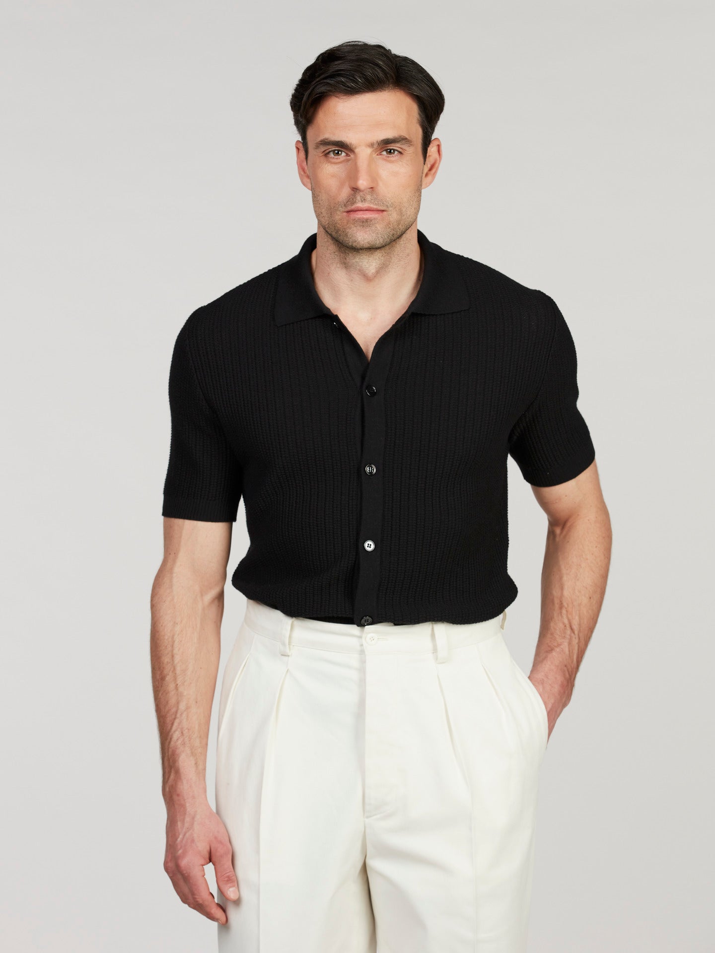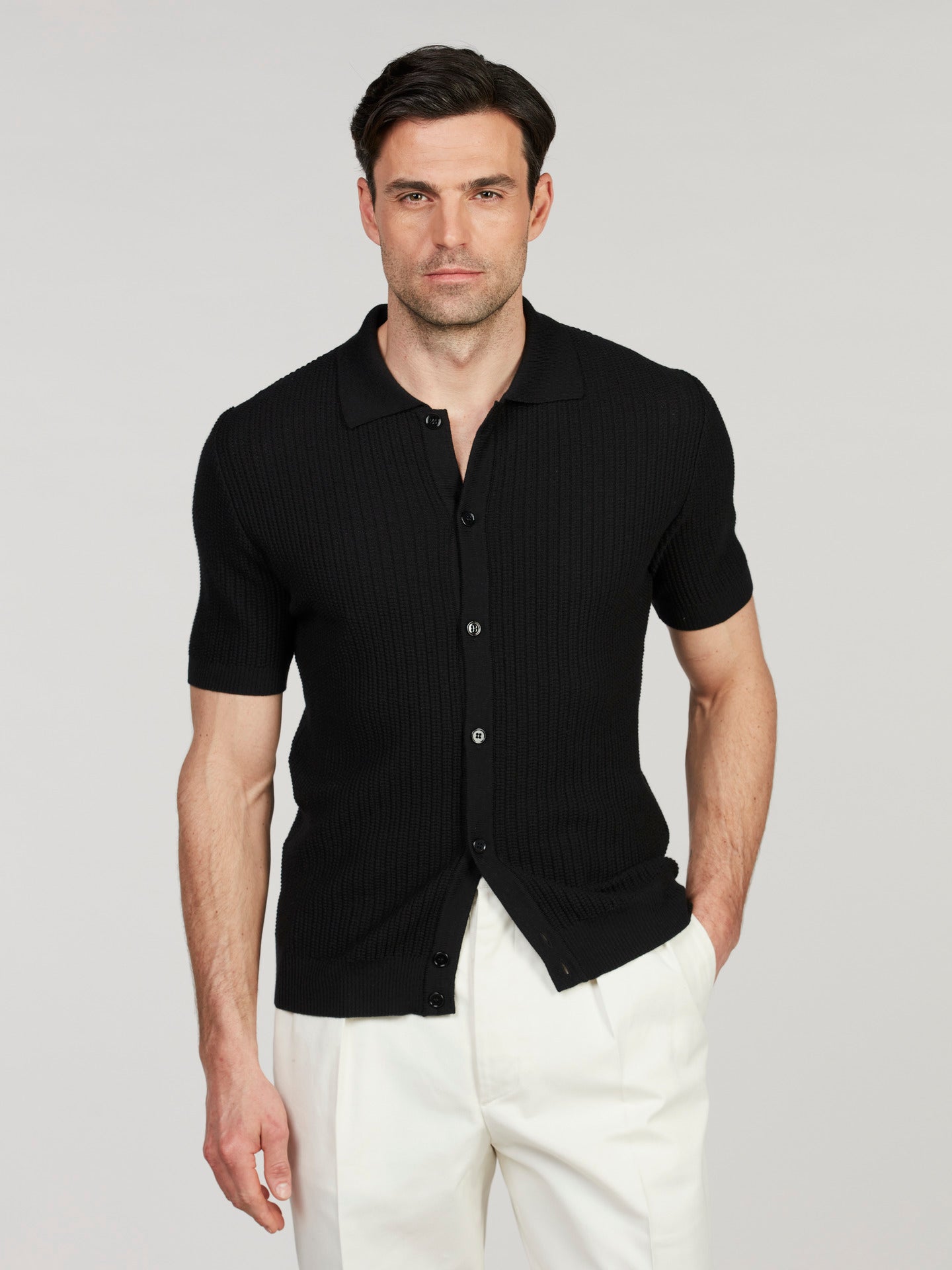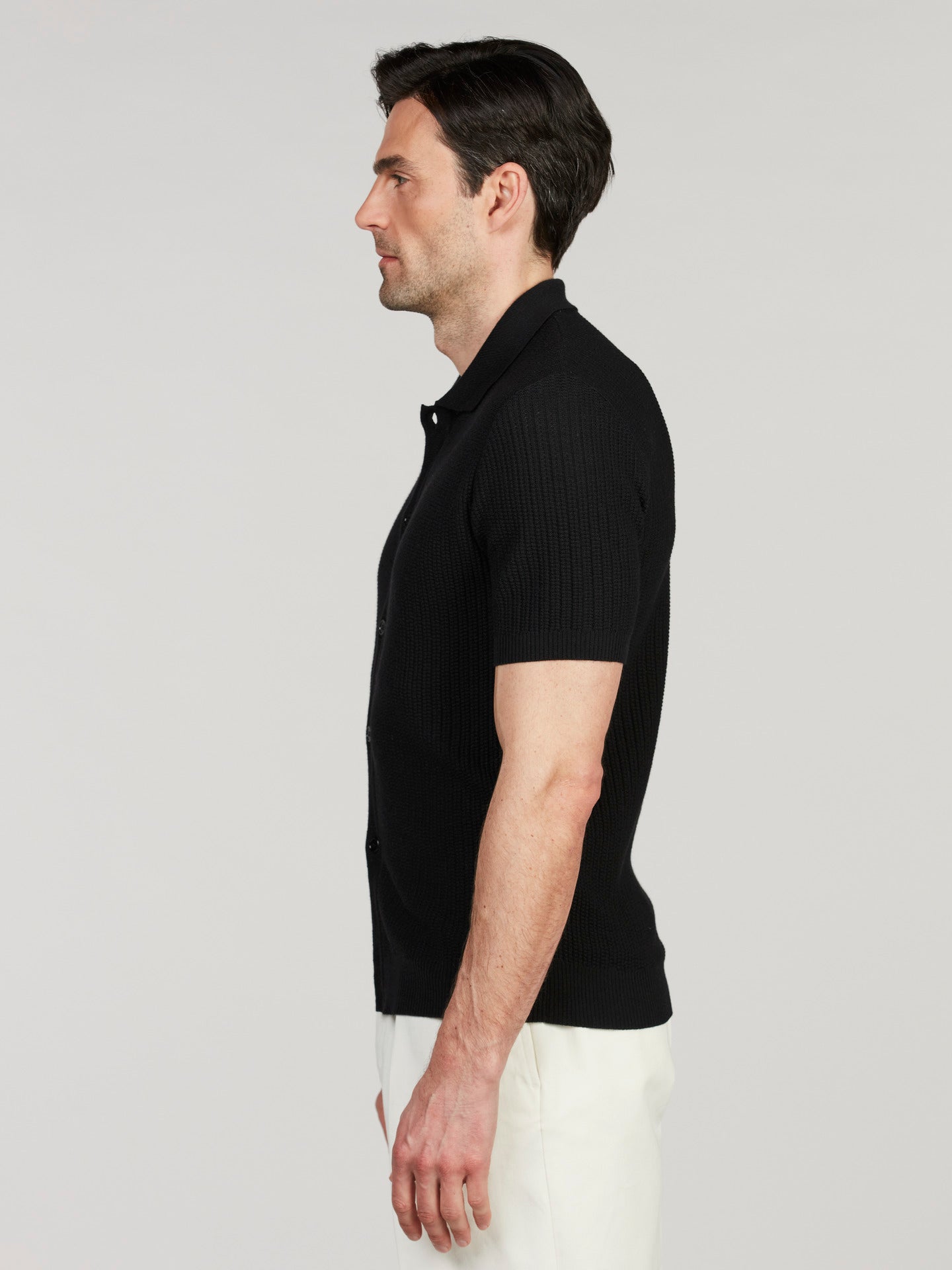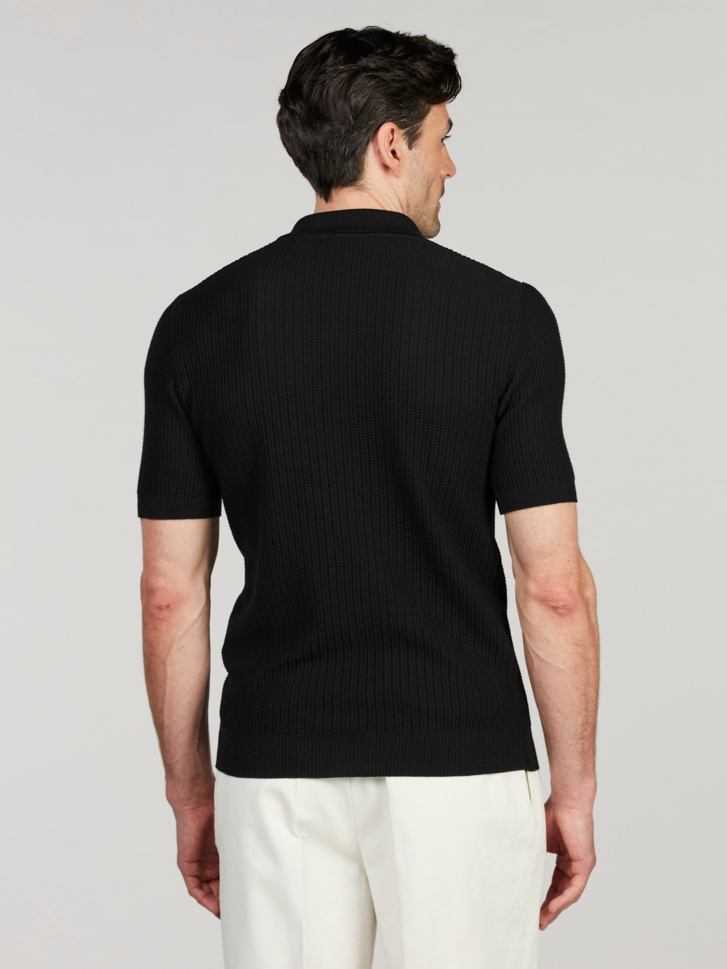 Svart Kortärmad Kragtröja i Merinoull