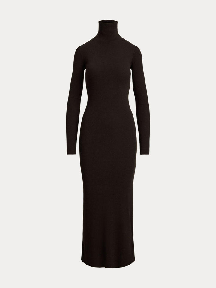 En elegant, ribbstickad poloklänning som formar sig mjukt efter kroppen för en slank och sofistikerad silhuett. Den långa längden, höga polokragen och det följsamma stretchmaterialet gör den till ett perfekt plagg för både vardag och mer dressade tillfällen. En tidlös modell som kombinerar komfort med ren, modern stil.