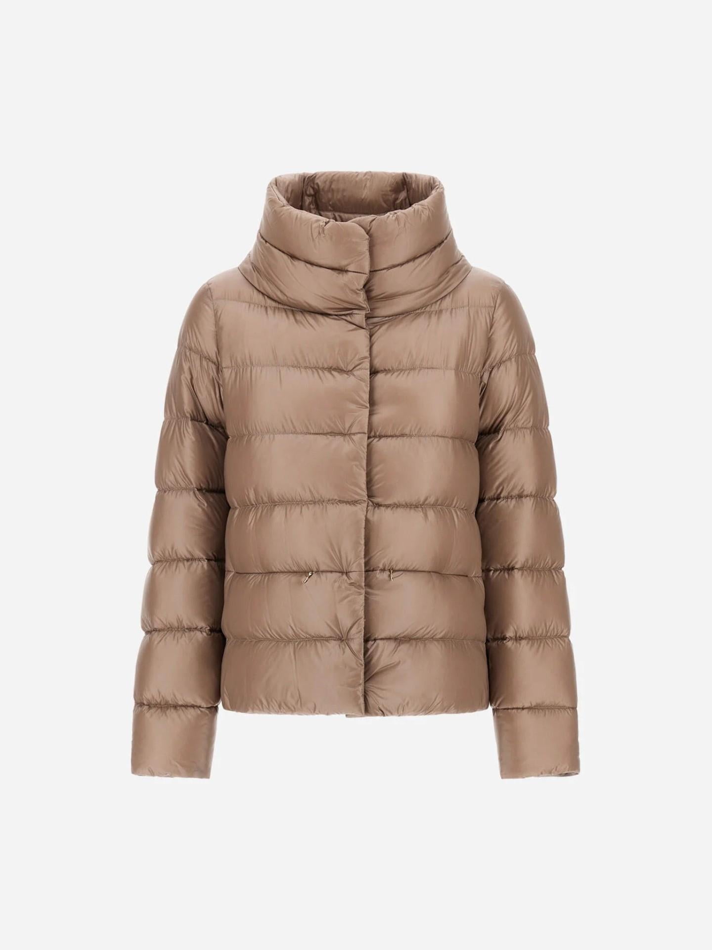 En sofistikerad jacka från Herno i varumärkets ikoniska ultralätta nylon, tillverkad med japansk 20-denierteknik för en silkeslen känsla och extra lätt vikt. Modellen har dunfyllning med 90 % gåsdun och 10 % fjäder, vilket ger värme utan att tynga. Den vattenavvisande ytan och de justerbara sidoknapparna gör plagget både praktiskt och elegant, perfekt i stadsmiljö eller som avslutande lager vid mer uppklädda tillfällen.