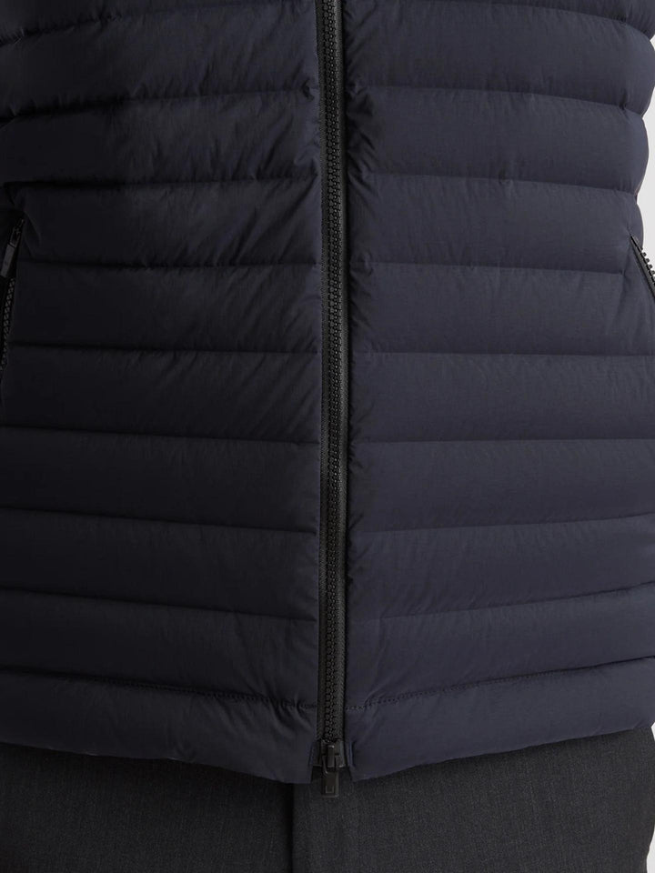 Den sömlösa Sonic Welded Channel-konstruktionen minimerar dunläckage och värmeförlust samtidigt som silhuetten hålls ren och skräddad. Perfekt som lätt ytterplagg eller som isolerande lager under kavaj eller jacka under kallare dagar.