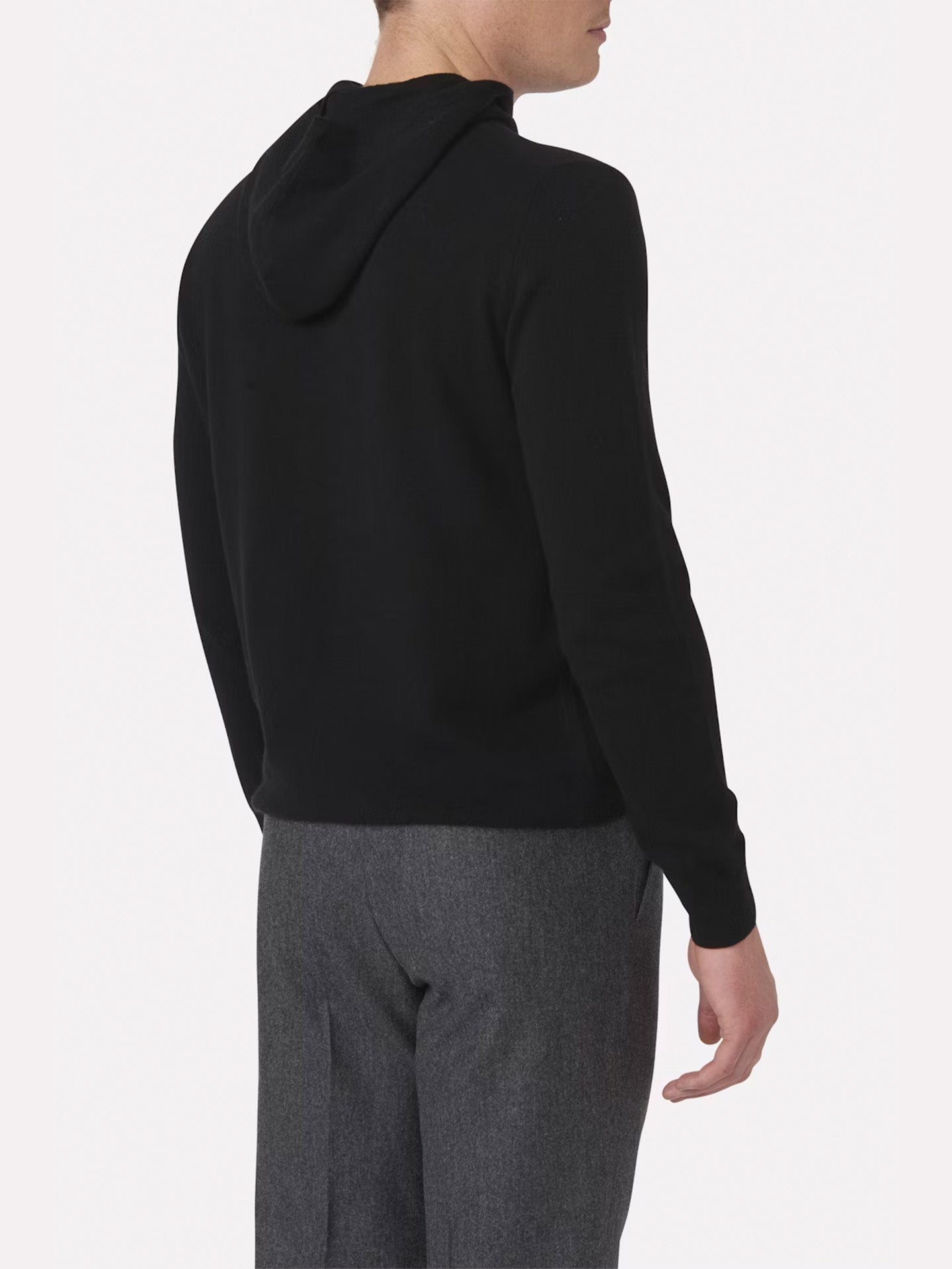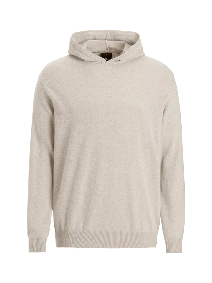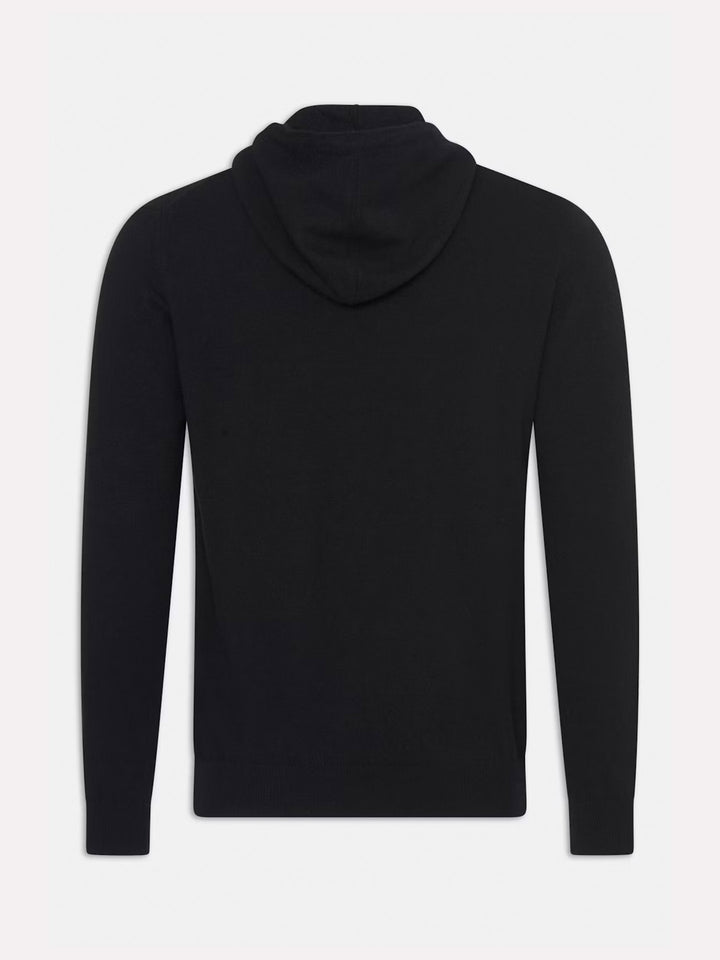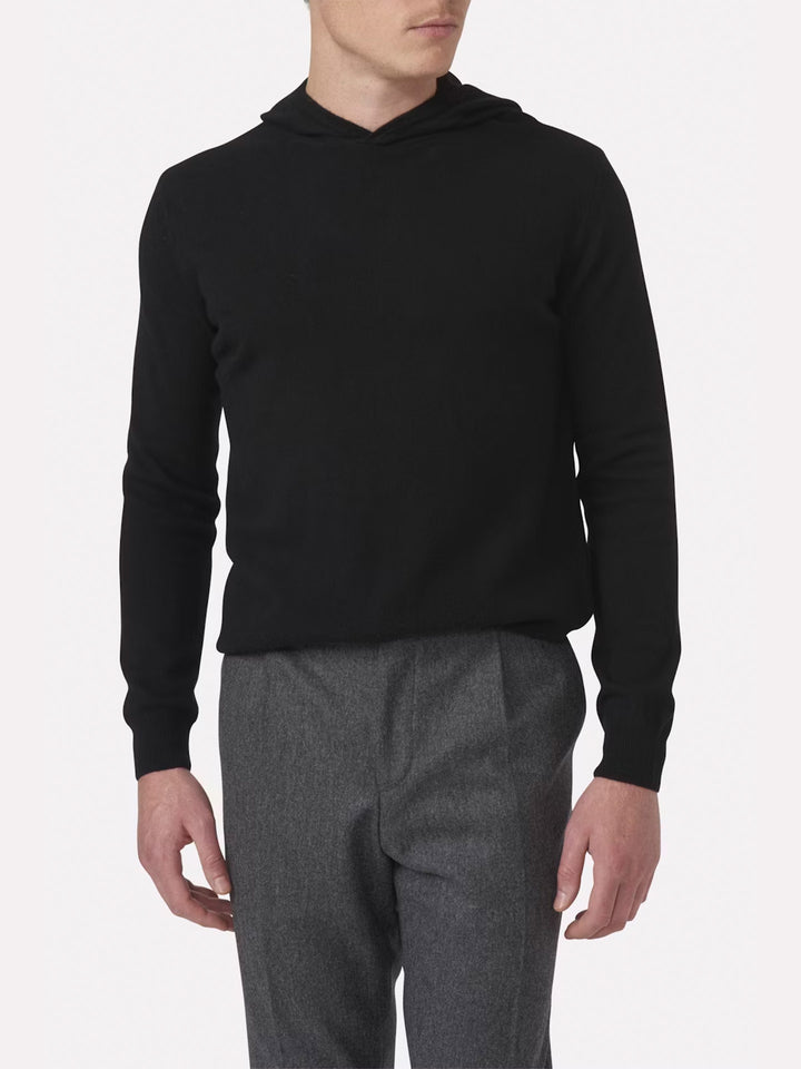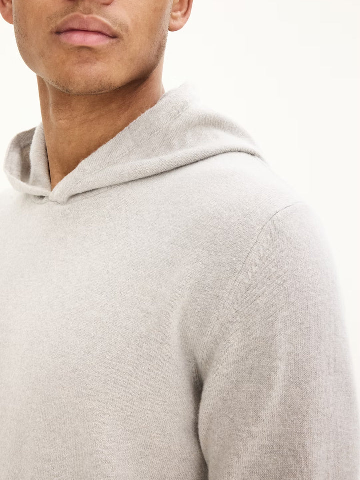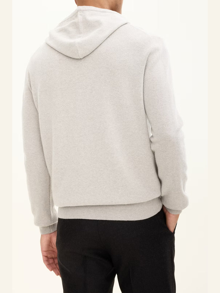 En lyxig hoodie från Oscar Jacobson, tillverkad i en mjuk blandning av ull, viskos och kashmir som ger värme, komfort och en silkeslen yta.