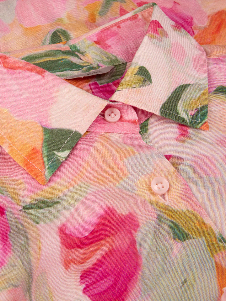 Rosa Siri Blommig Skjorta