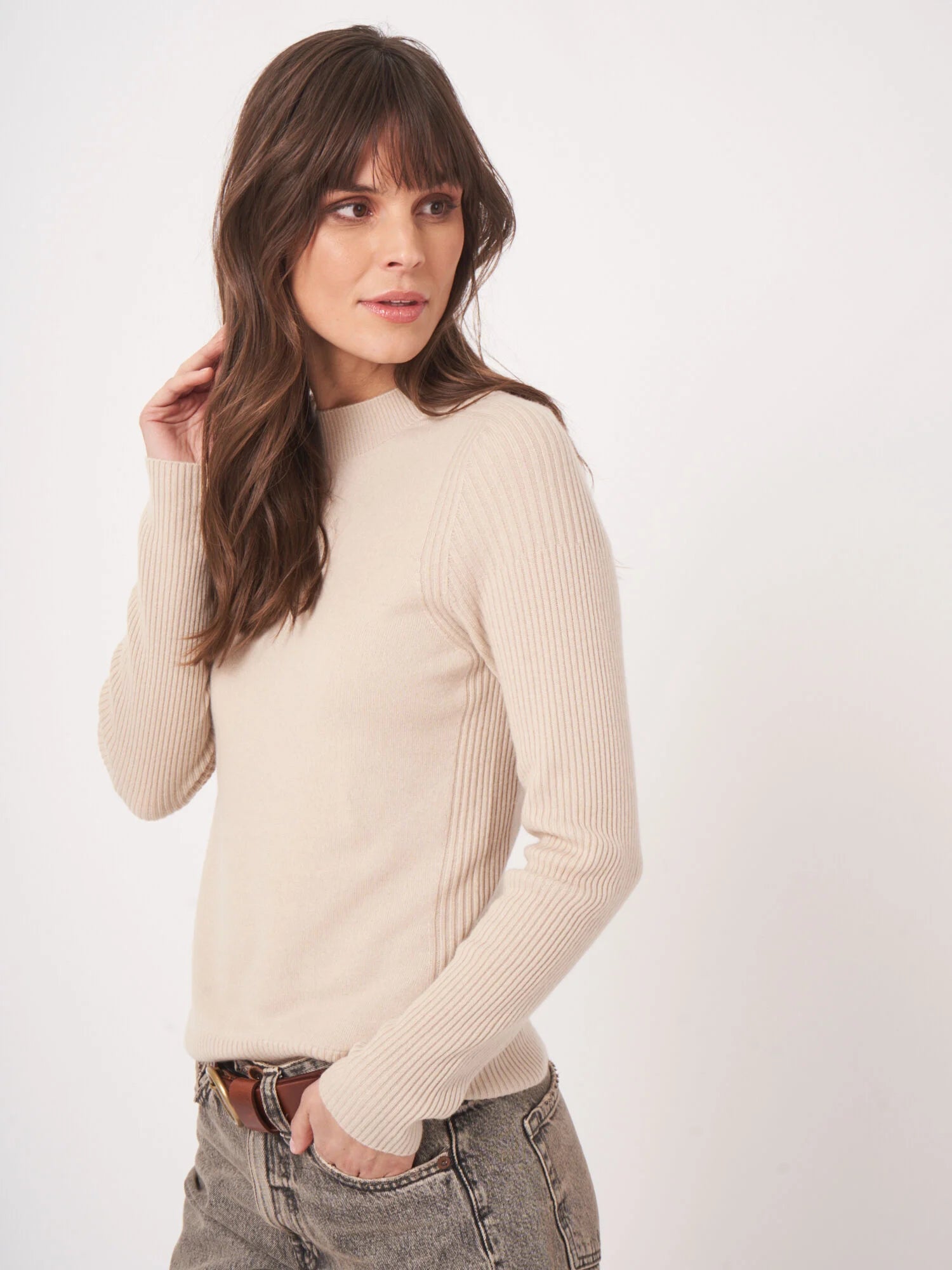 En lätt och elegant tröja i finstickad ull- och kashmirblandning med smickrande passform. Modellen har ribbad hals, raka linjer och subtila ribbdetaljer i sidorna som ger en tidlös och kvinnlig silhuett. Perfekt som basplagg under kavaj eller till vardags med jeans.