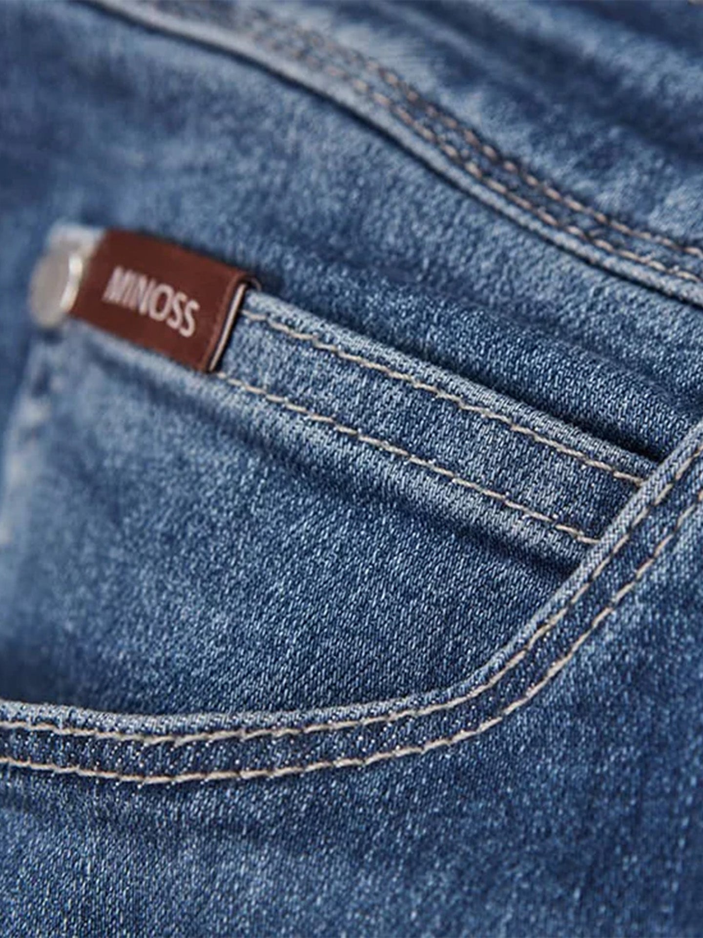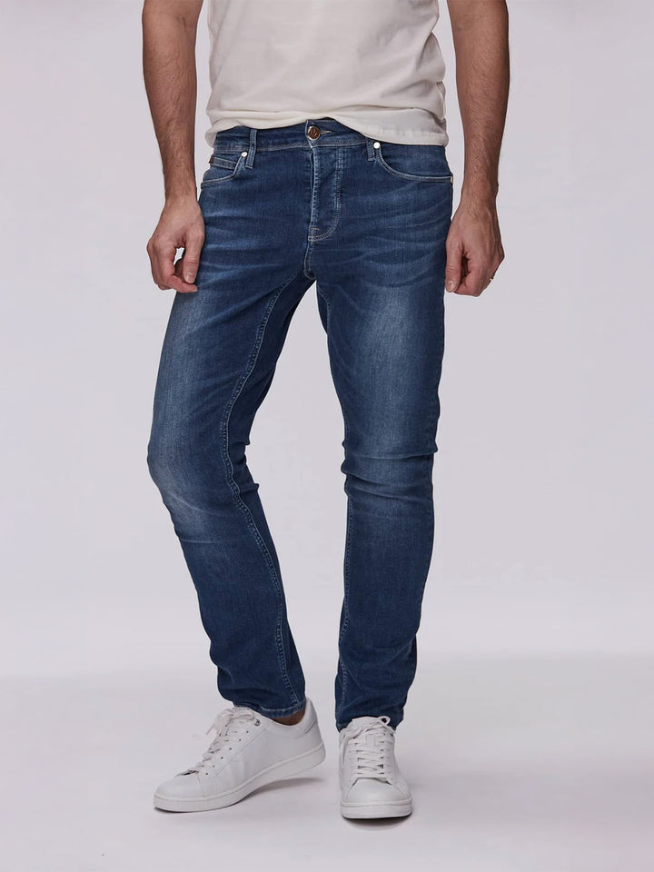 Clyo Denim har en regular tapered passform som kombinerar en bekväm midja med en lätt avsmalnande benform för en modern och välbalanserad silhuett. Modellen bygger på den populära Clyo Stretch-byxan och har en lätt framåtlutad midja som ger en naturlig passform och ökad komfort. Tyget är vävt med T400®-fiber som ger hög elasticitet, bibehållen form och en mjuk handkänsla. Ett par jeans med dressad look och premiumkomfort som fungerar lika bra till vardags som till kontoret.