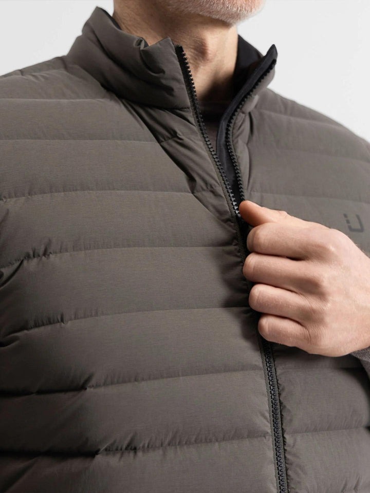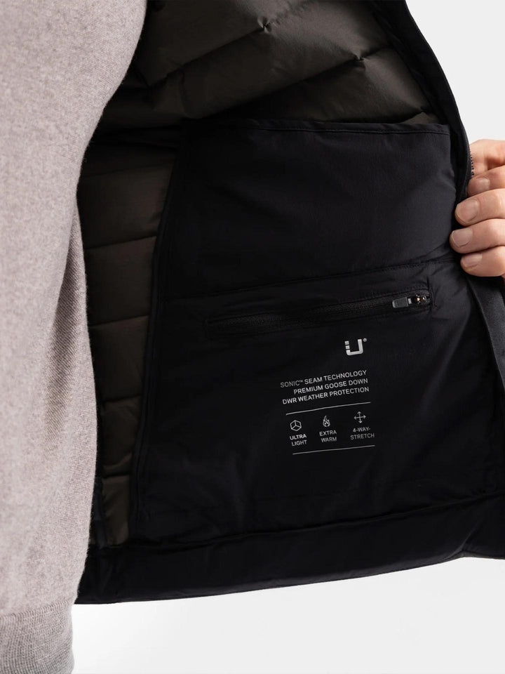 Den sömlösa Sonic Welded Channel-konstruktionen minimerar dunläckage och värmeförlust samtidigt som silhuetten hålls ren och skräddad. Perfekt som lätt ytterplagg eller som isolerande lager under kavaj eller jacka under kallare dagar.