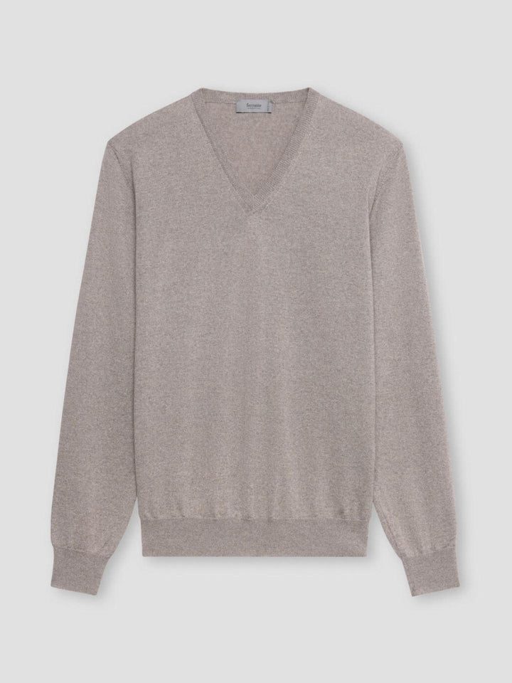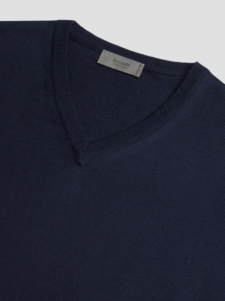 En elegant och tidlös v-halsad tröja från Ferrante, stickad i extra fin merinoull av högsta kvalitet. Materialet ger en mjuk och följsam känsla med naturlig värme och andningsförmåga.