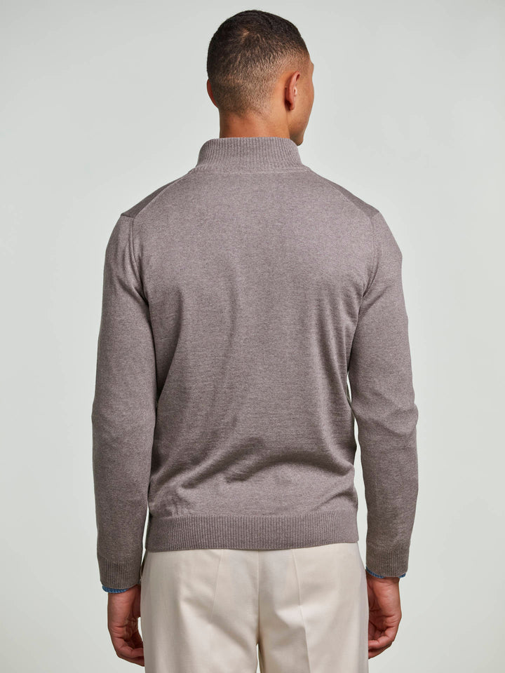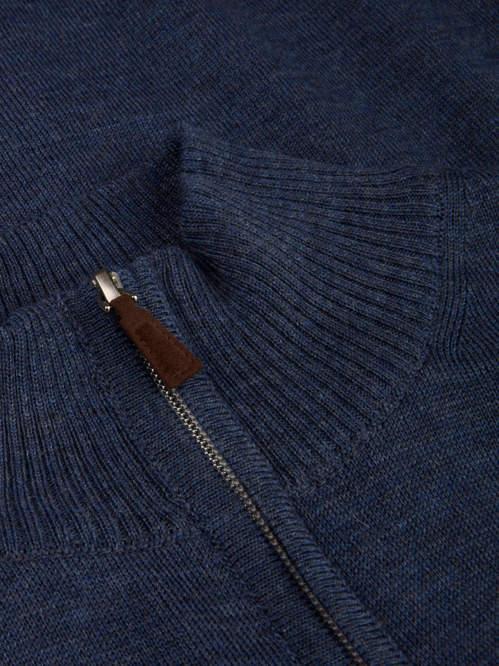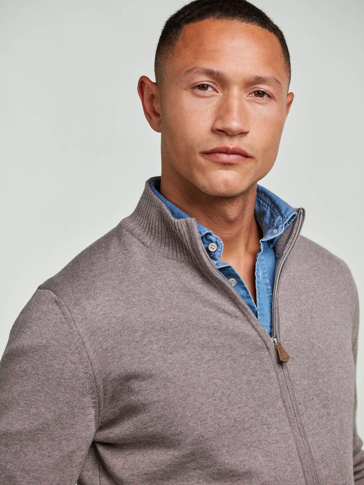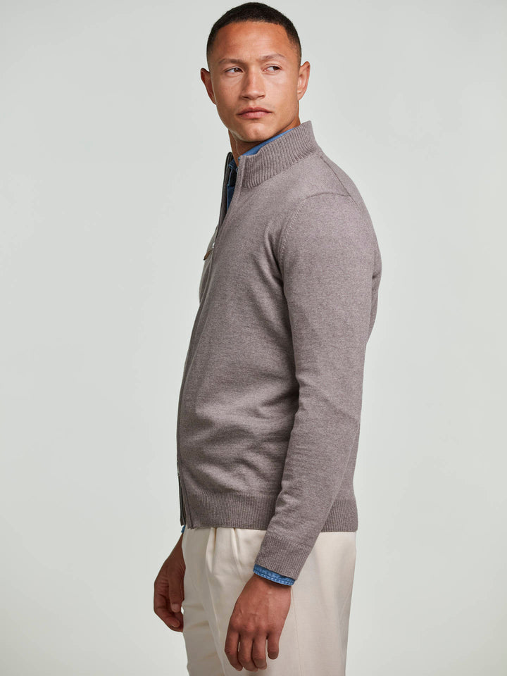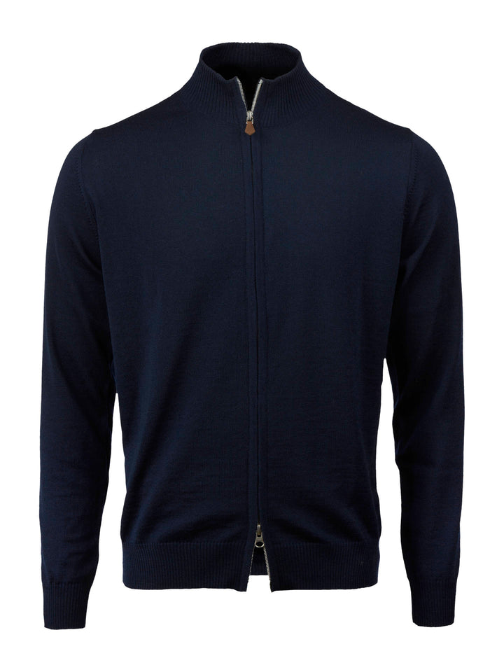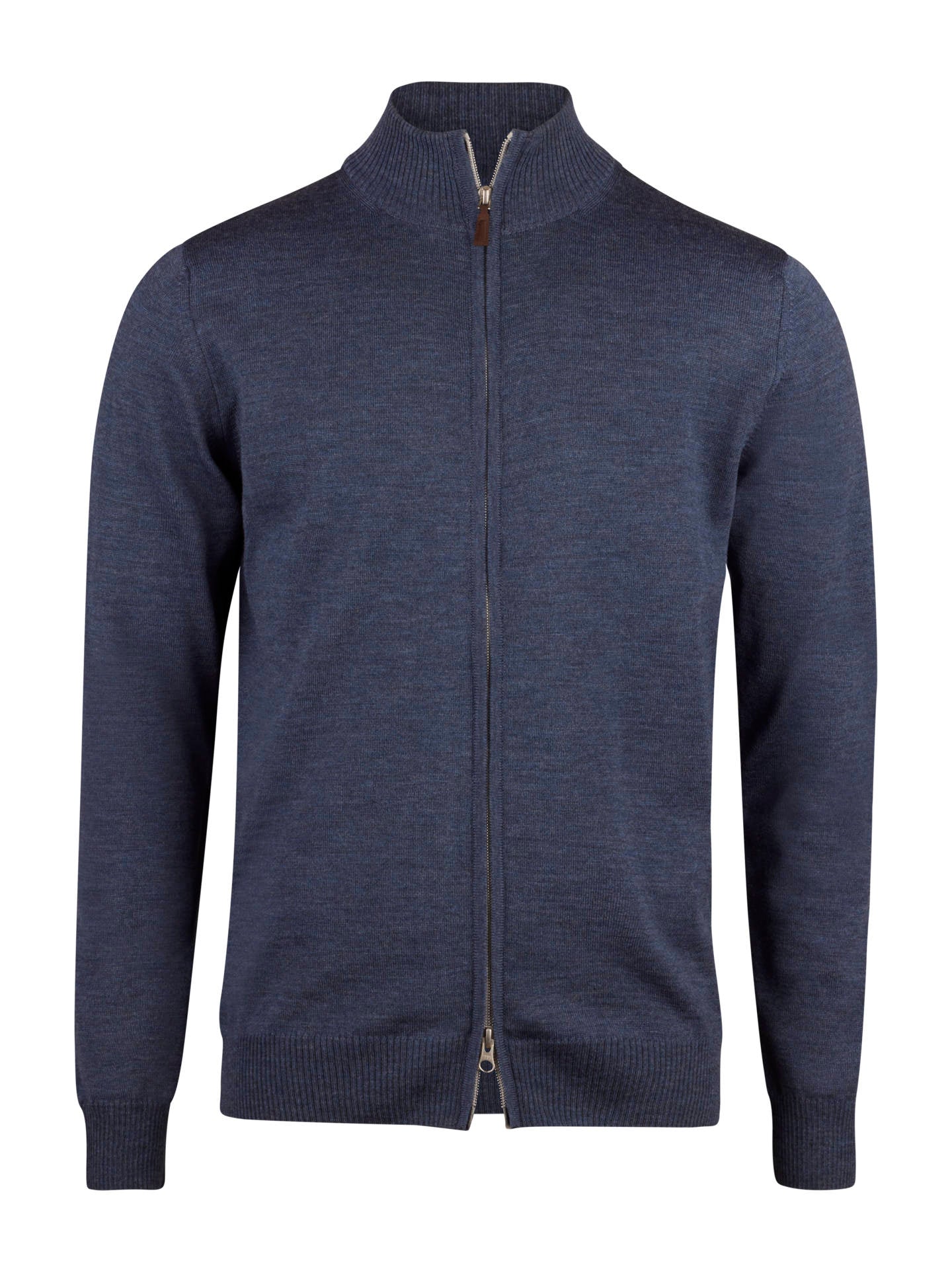 En klassisk helzip-cardigan från Stenströms, stickad i 100% merinoull som både värmer och andas. Den ribbade kragen och de ribbade kanterna ger ett tidlöst uttryck, medan den mjuka merinoullen gör tröjan behaglig att bära året runt. Perfekt som lager över en skjorta för ett modernt kontorsuttryck eller som ett stilrent vardagsplagg som fungerar oavsett säsong.
